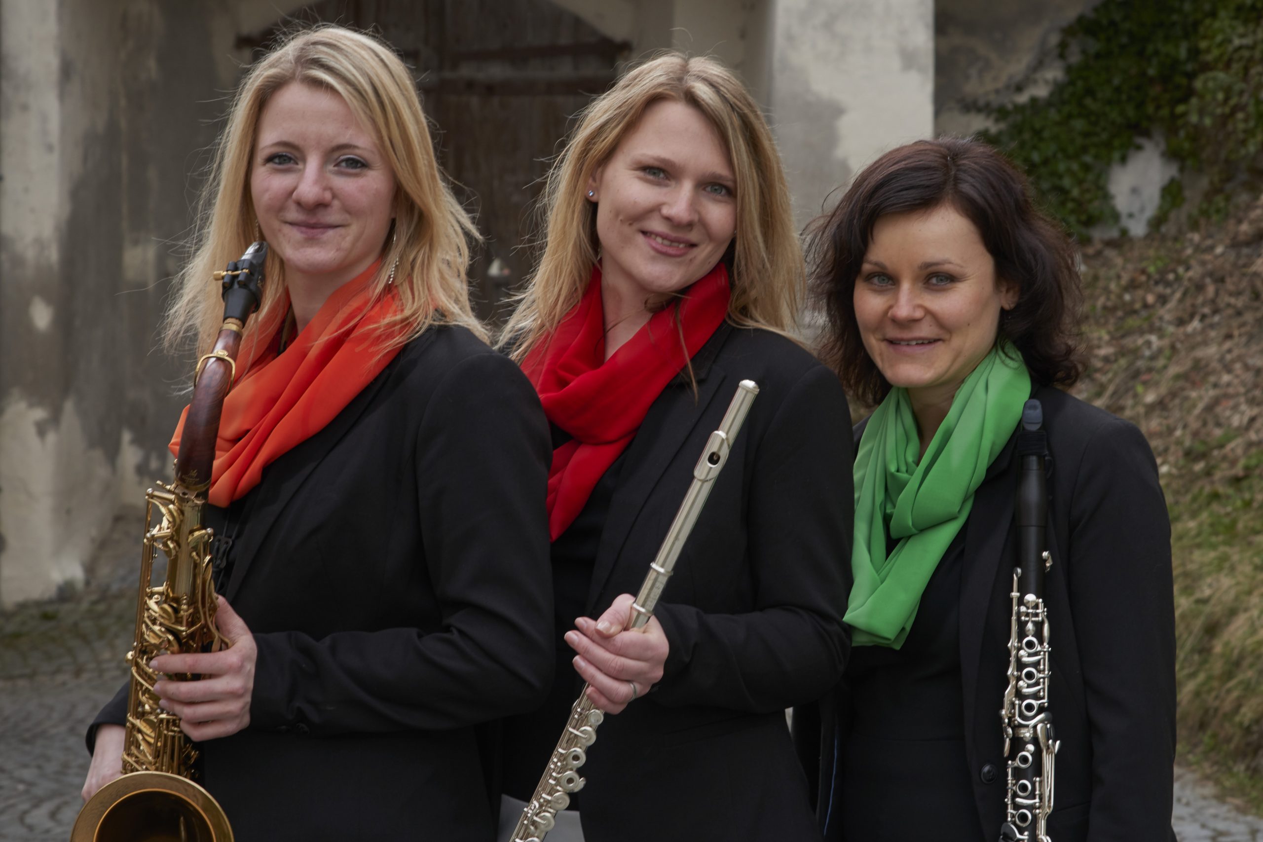 Madame d’Anches am 30.3. sind VERENA WEGSCHEIDER,Dr. SONJA SCHEU und SILVIA BLEICHER ein Trio aus QUERFLÖTE, KLARINETTE und SAXOPHON Sie machen mit LEBENDIGKEIT, SPIELFREUDE und HARMONIE auf sich aufmerksam; sowohl im Ensemble als auch solistisch. Die drei versierten Musikerinnen interpretieren