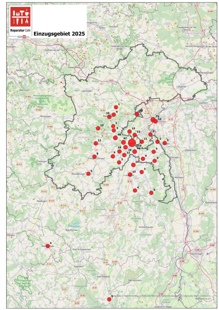 Unsere Besucher kamen mit 56 % primär aus dem Gebiet der Stadt Erbach. Die 486 Besucher verteilten sich quer über alle Erbacher Stadtteile. Das Einzugsgebiet hat sich über Erbach hinaus auch in 2025 wieder vergrößert. Von dort kam auch die Zunahme. So kamen 135 aus der Stadt Ulm, 49 aus Blaubeuren, 57 aus der Raumschaft Ehingen 15 aus den Holzstöcken, 43 aus der Raumschaft Laupheim, 23 aus Blaustein und 13 aus Schelklingen. Am weitesten entfernt kamen Besucher aus Bad Saulgau, Ravensburg, Munderkingen, Mittelbiberach und Daugendorf.